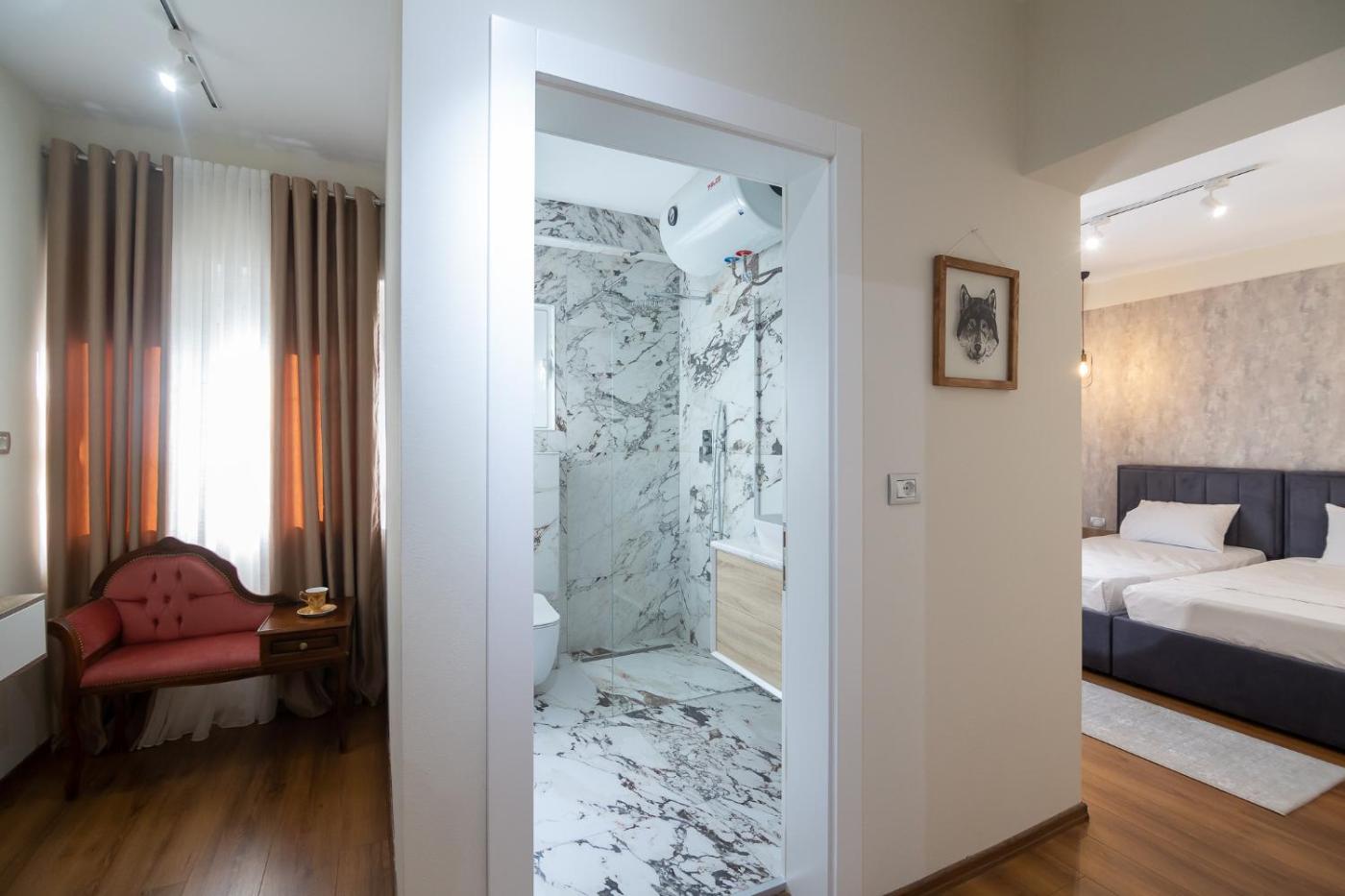 Boasting a hot tub, Melnaz Apartament 3 is situated in Korçë. The Monastery Saint Naum is within 42 km of the apartment. Free WiFi is available throughout the property and Ohrid Lake Springs is 43 km away.