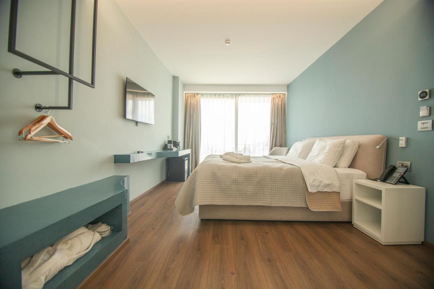 Deluxe Double Room with Balcony and Sea View. This double room features a pool with a view. The spacious double room features air conditioning, soundproof walls, a balcony with sea views as well as a private bathroom boasting a shower. The unit has 1 bed. ;