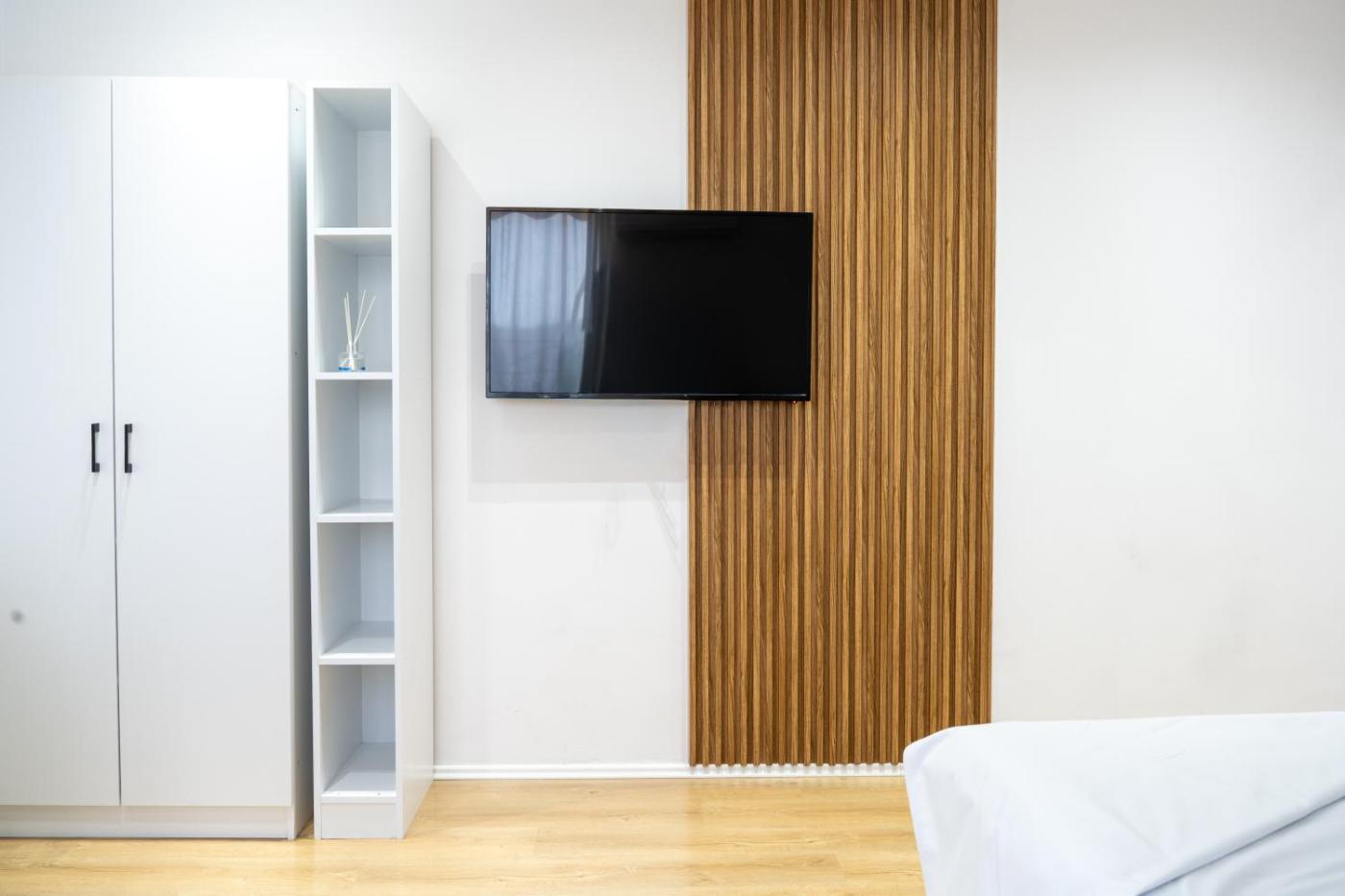 One-Bedroom Apartment. The air-conditioned apartment features 1 bedroom, 1 bathroom and a kitchen. The apartments kitchen is available for cooking and storing food. This apartment has a washing machine, heating and a flat-screen TV. The unit offers 1 bed.