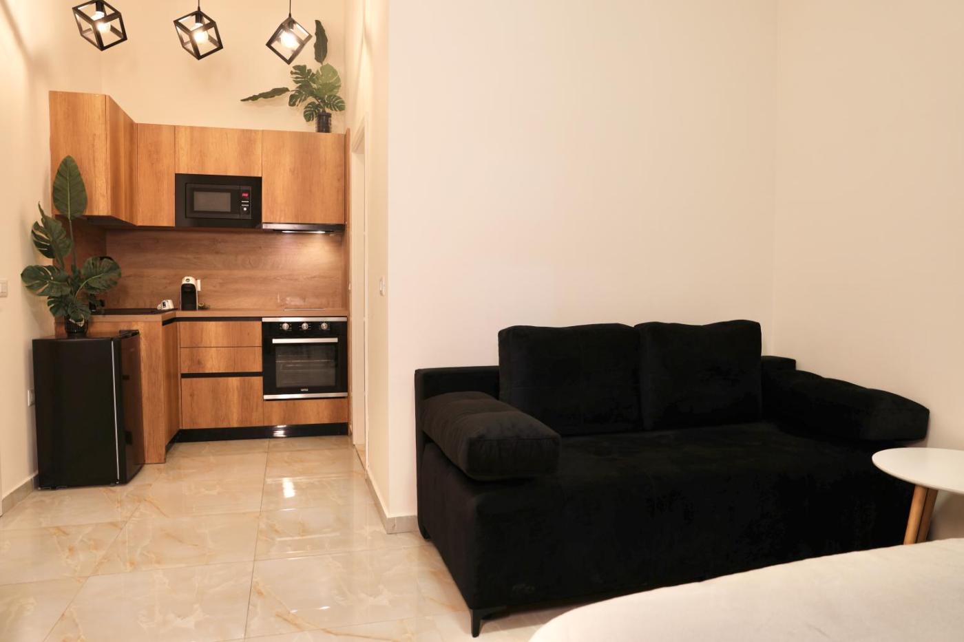 Deluxe Studio. The well-equipped kitchen has a stovetop, a refrigerator, an oven and a microwave. The studio features air conditioning, a washing machine, a balcony with ancourtyard view as well as a private bathroom boasting a walk-in shower. The unit has 2 beds.